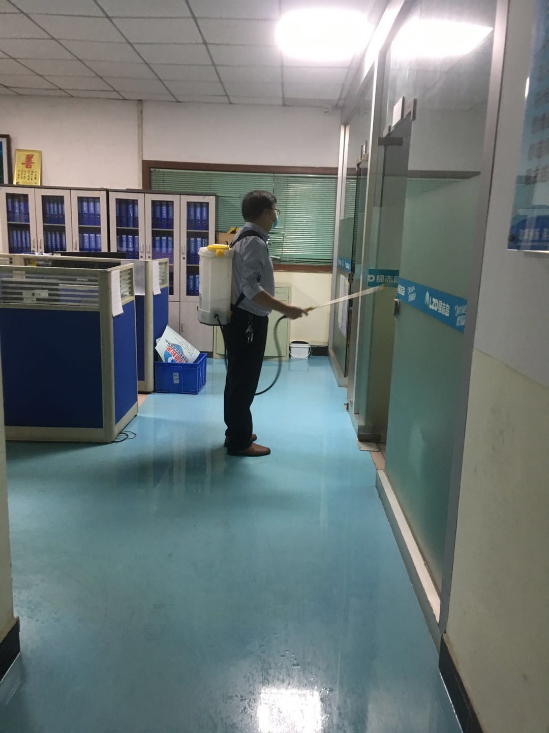 ▲賴總對車間每個角落用84消毒水進行消毒