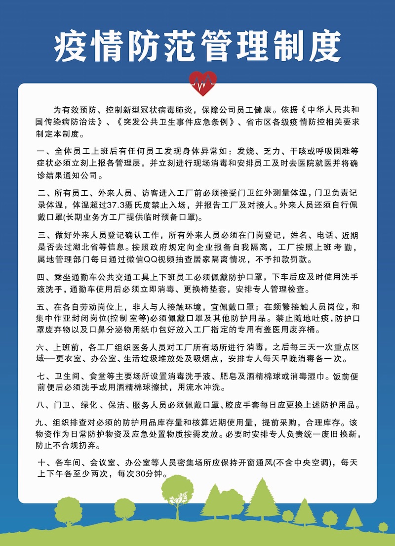 至此春節(jié)已過,萬業(yè)復工時期,每個企業(yè)也面臨各方面防疫挑戰(zhàn),做好防疫也是企業(yè)們的首要責任,為響應政府要求,我們防疫也是有備而來的,讓每個上崗人員放心工作。